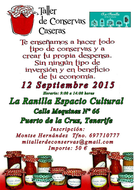 Este Sábado, día 12 de Septiembre, tienes la oportunidad de elaborar tu propia despensa, aprendiendo las técnicas necesarias de conservación, taller demandado por múltiples lugares de España y ahora en Canarias de la mano de MI TALLER DE CONSERVAS.