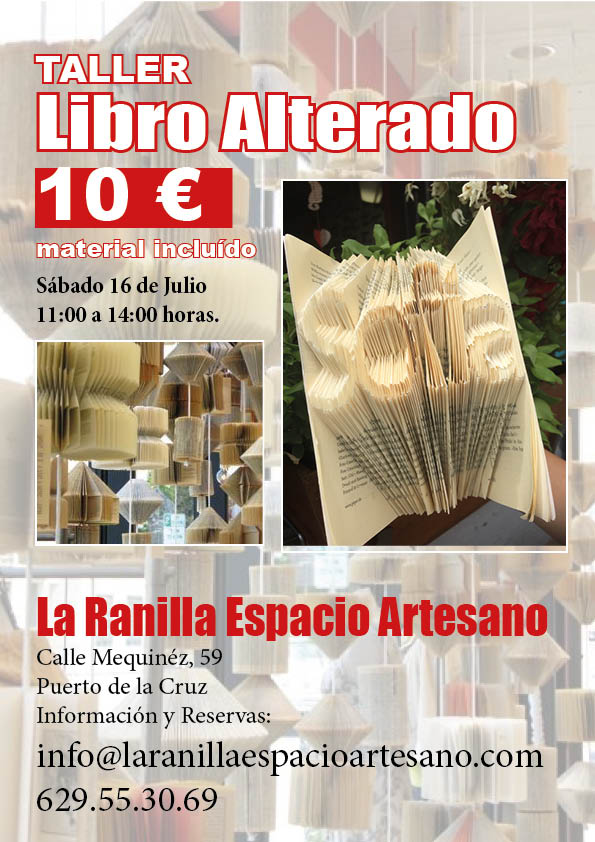 Taller de Libro Alterado en La Ranilla Espacio Artesano. Sábado 16 de Julio de 11:00 a 14:00 horas. por Lola Reyes | Jul 7, 2016 | Blog, Talleres | 0 Comentarios Deja un comentarioCancelar respuesta